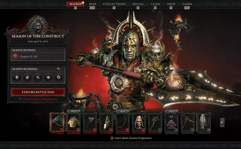 Sezon Konstruktów przyniesie także nowe stroje dostępne w sklepie Tejal, takie jak zestaw Władca Pożeracz dla barbarzyńcy. W sezonie 3. Diablo 4 nie zabraknie również karnetu bojowego, który będzie mieć łącznie 90 poziomów – 28 darmowych i 62 premium.